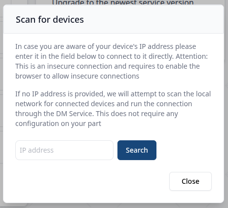 If you are already aware of the Local IP address of your device, you can instead fill it in the popup to skip having the service scanning the whole local network.